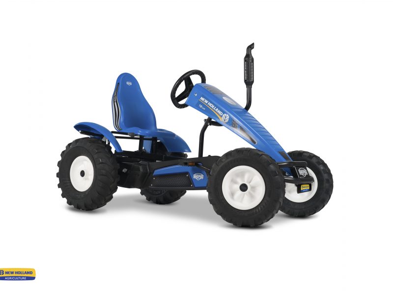 This BERG New Holland go-kart will turn you into the best helper a farmer can wish for! The impressive deep-tread tyres and the swing axle will give you additional grip in the mud and keep you firmly on the ground on uneven terrain! The unique BFR system means you have a back-pedal brake, whilst you can still easily pedal forwards and backwards. For added playing fun, you can fit out this go-kart with lots of great accessories such as a lift bucket, pallet fork or roll bar with flashing light.